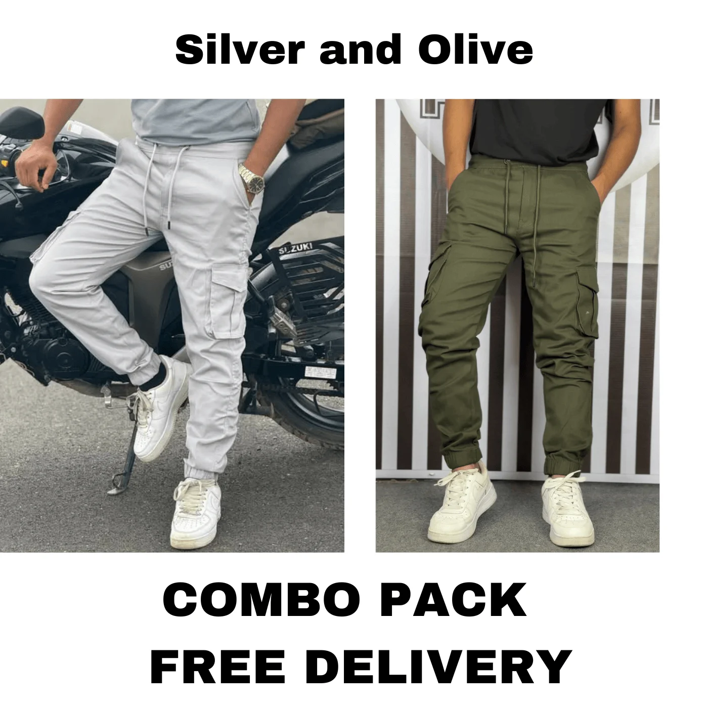 2 pcs combo Olive and Silver color 6 pocket cargo pant